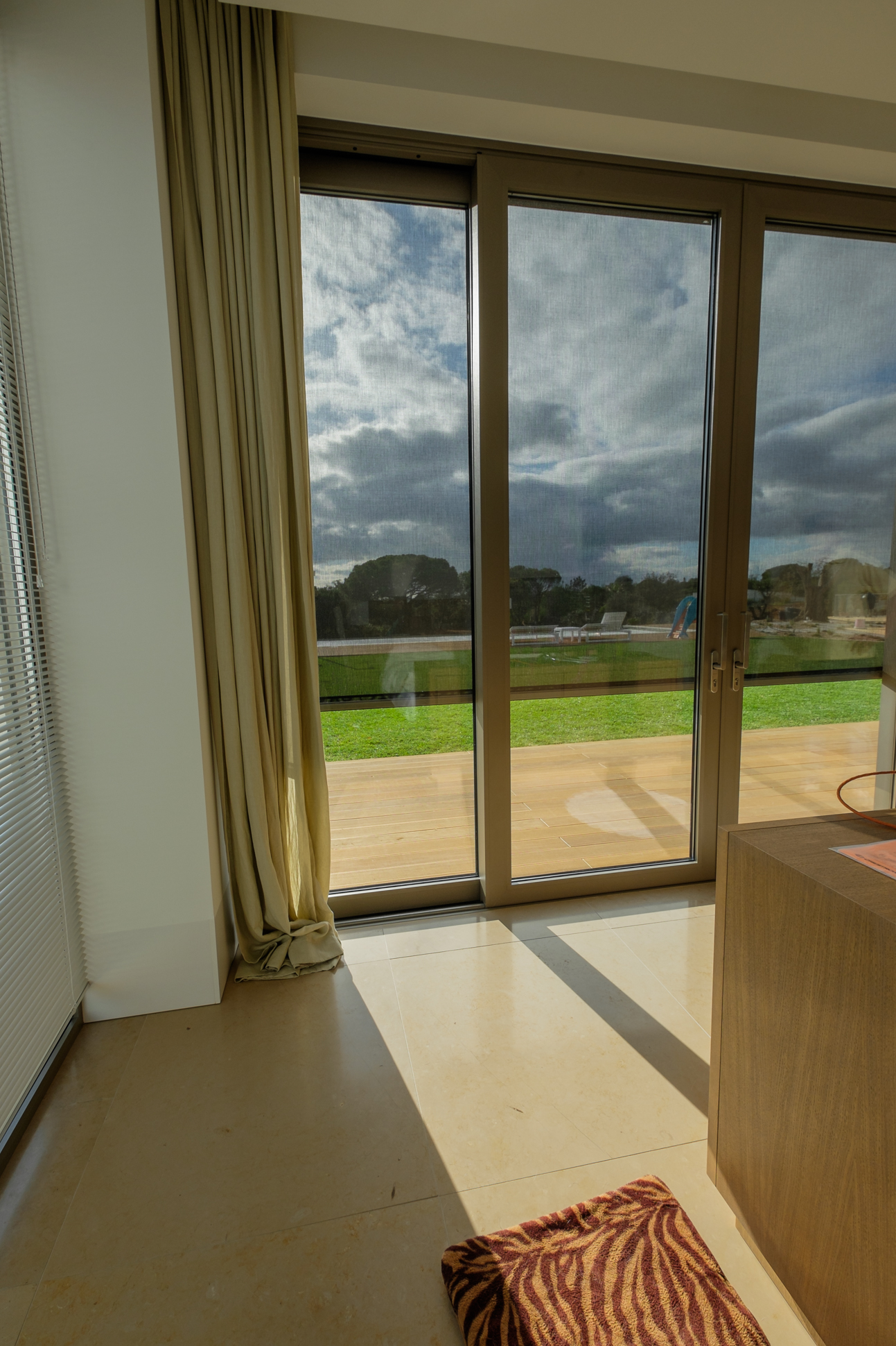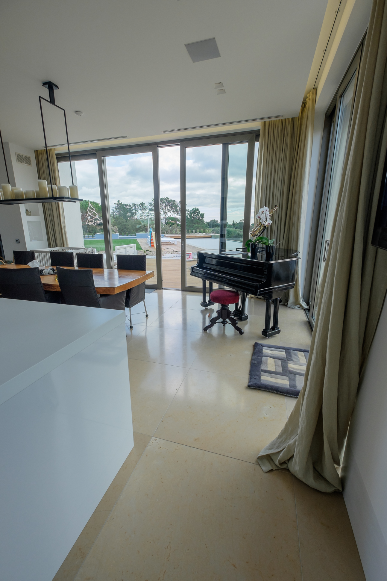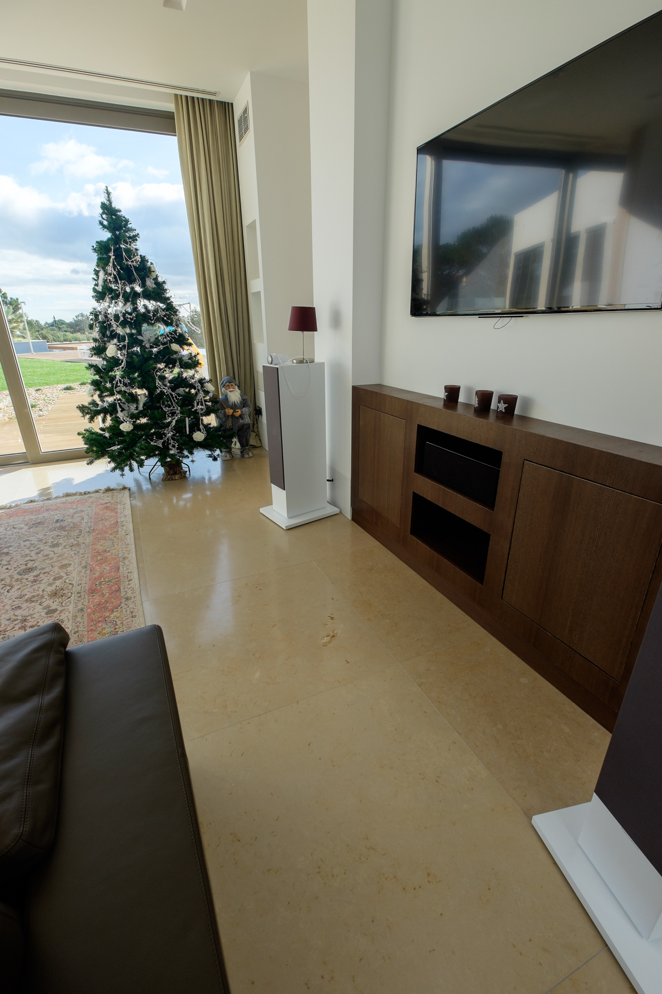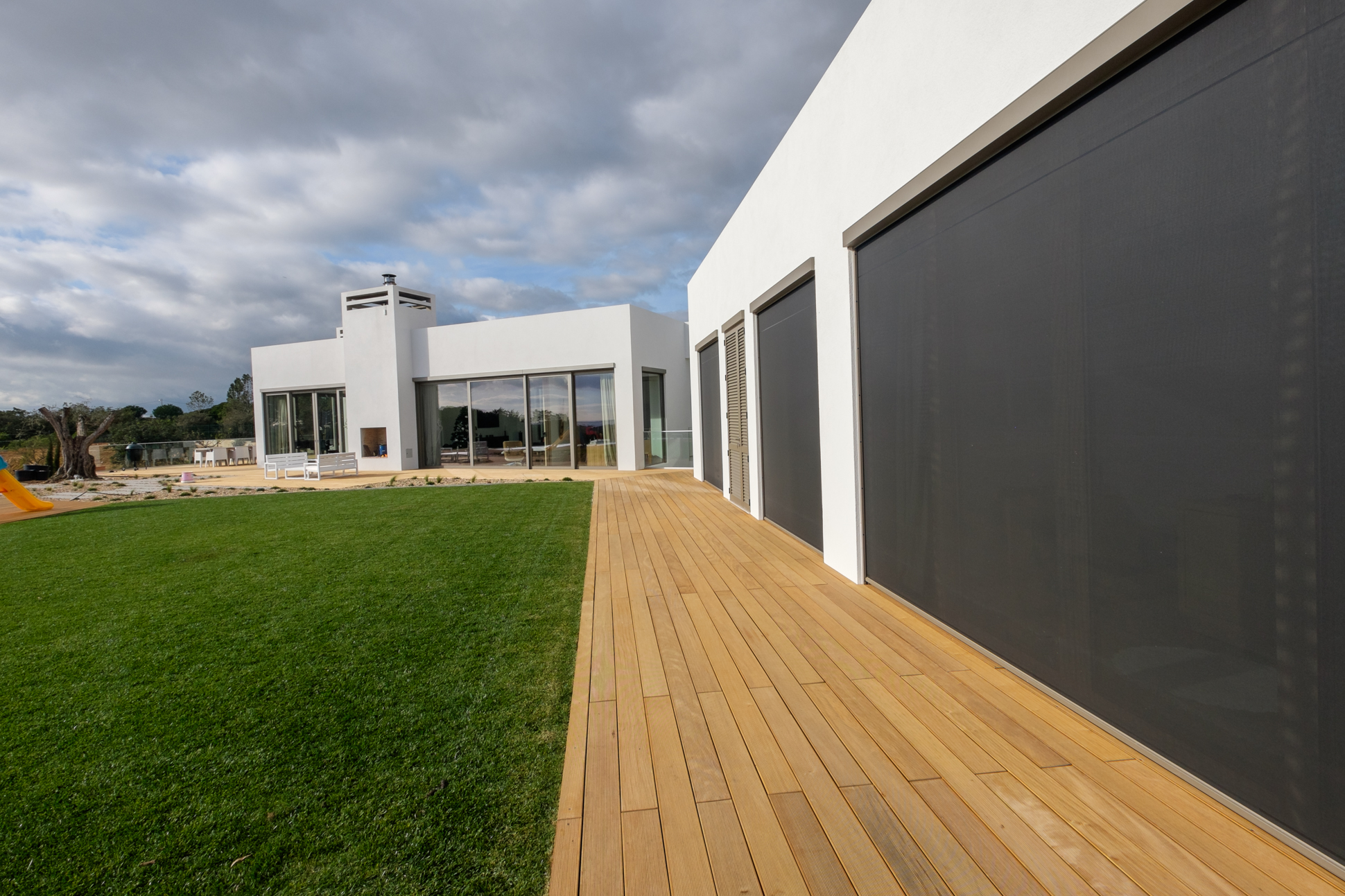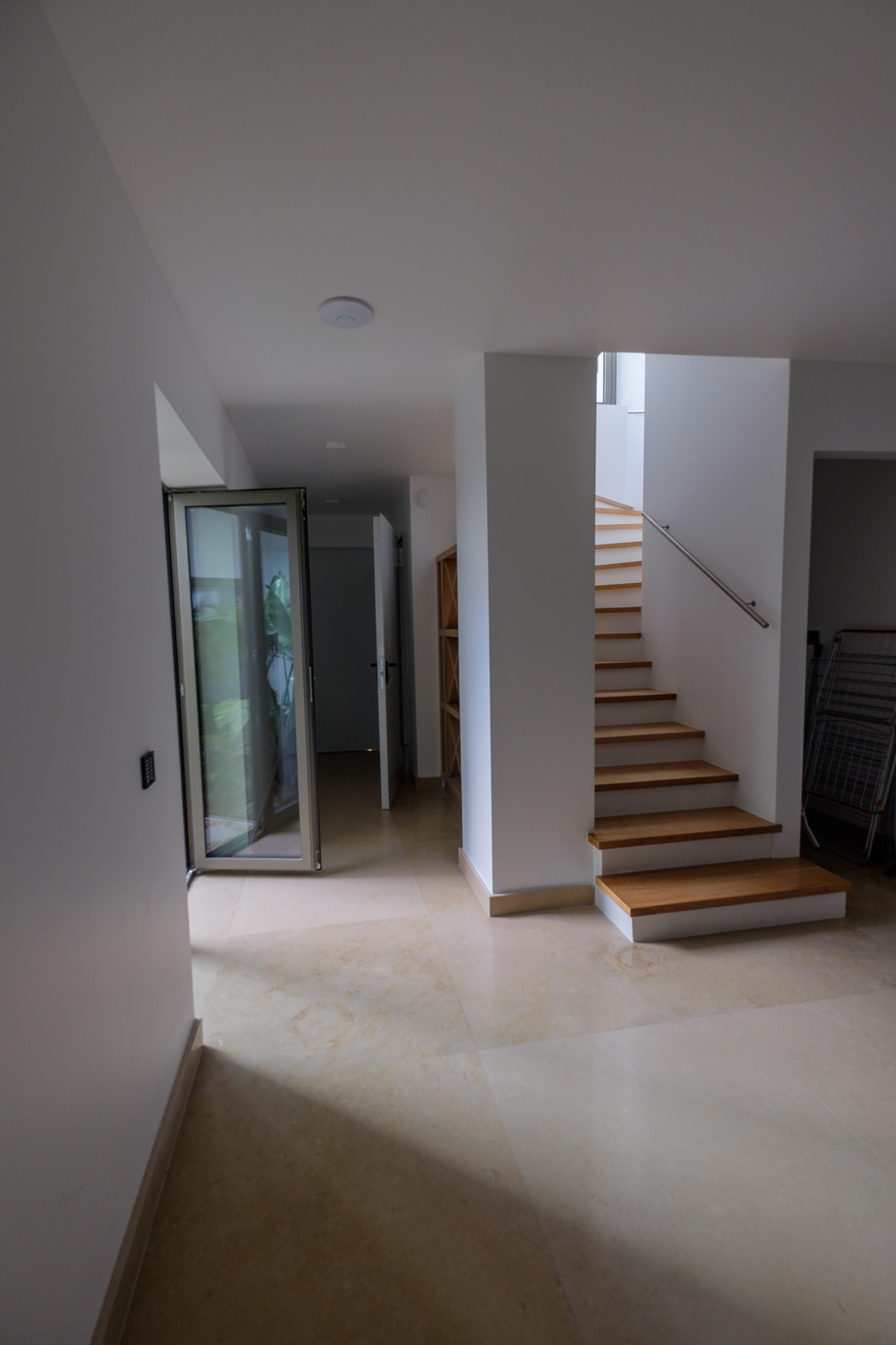 Ataija Coffee: um Ataija Crememais escuro, calcário de elevada rigidez. Pavimento com ladrilhos na medida 900x900x20mm acabamento Amaciado, obra no Algarve.