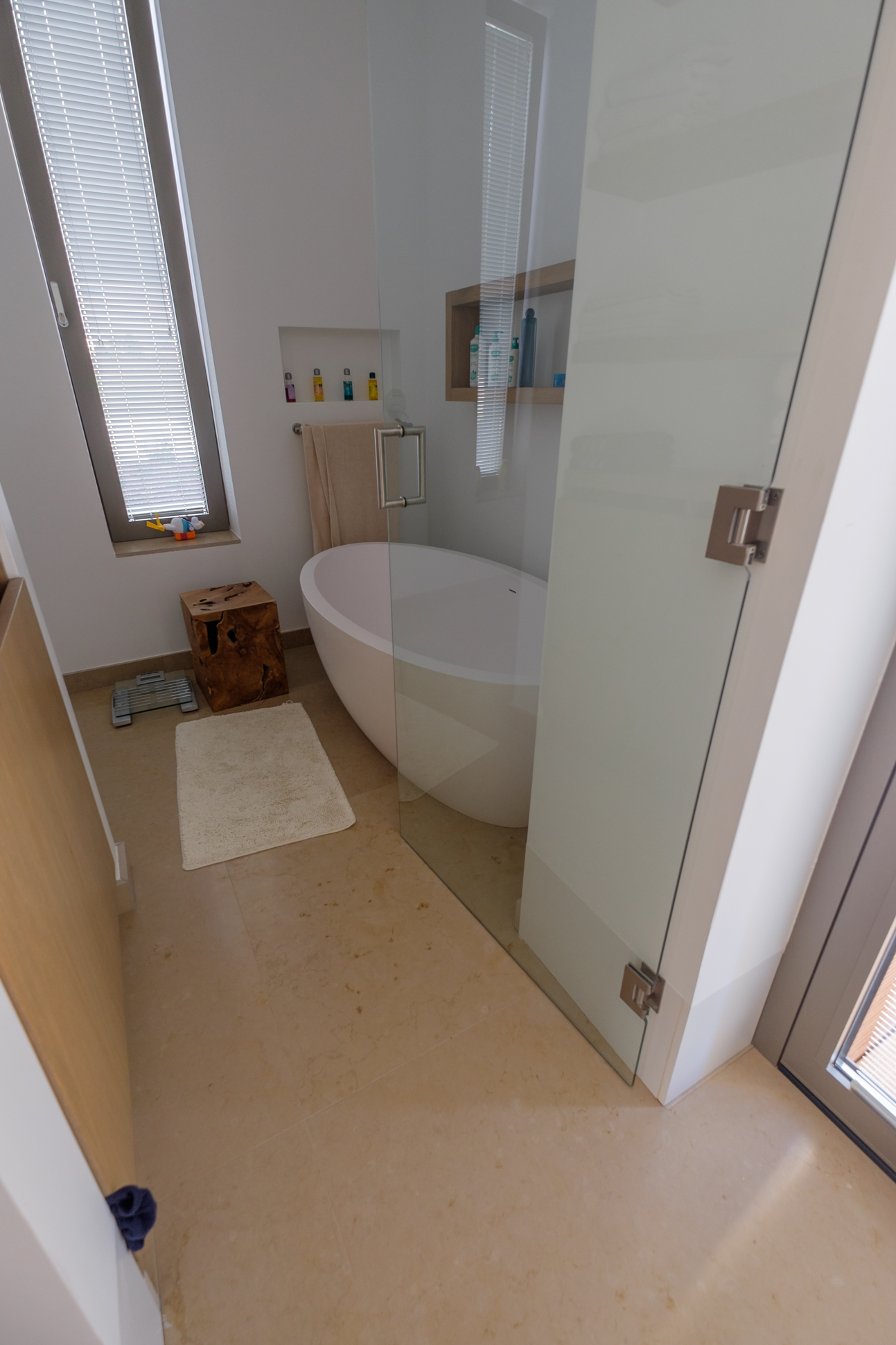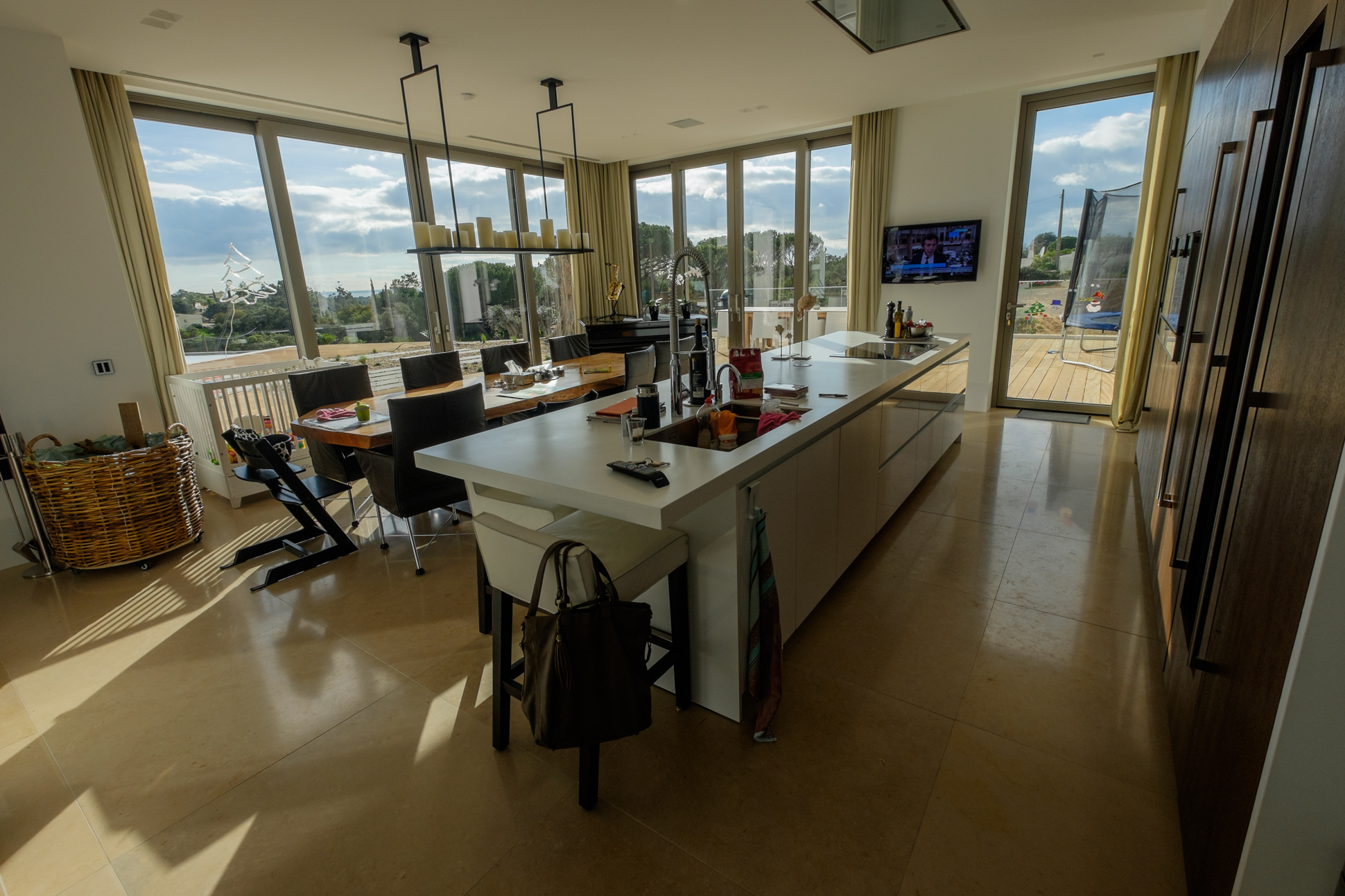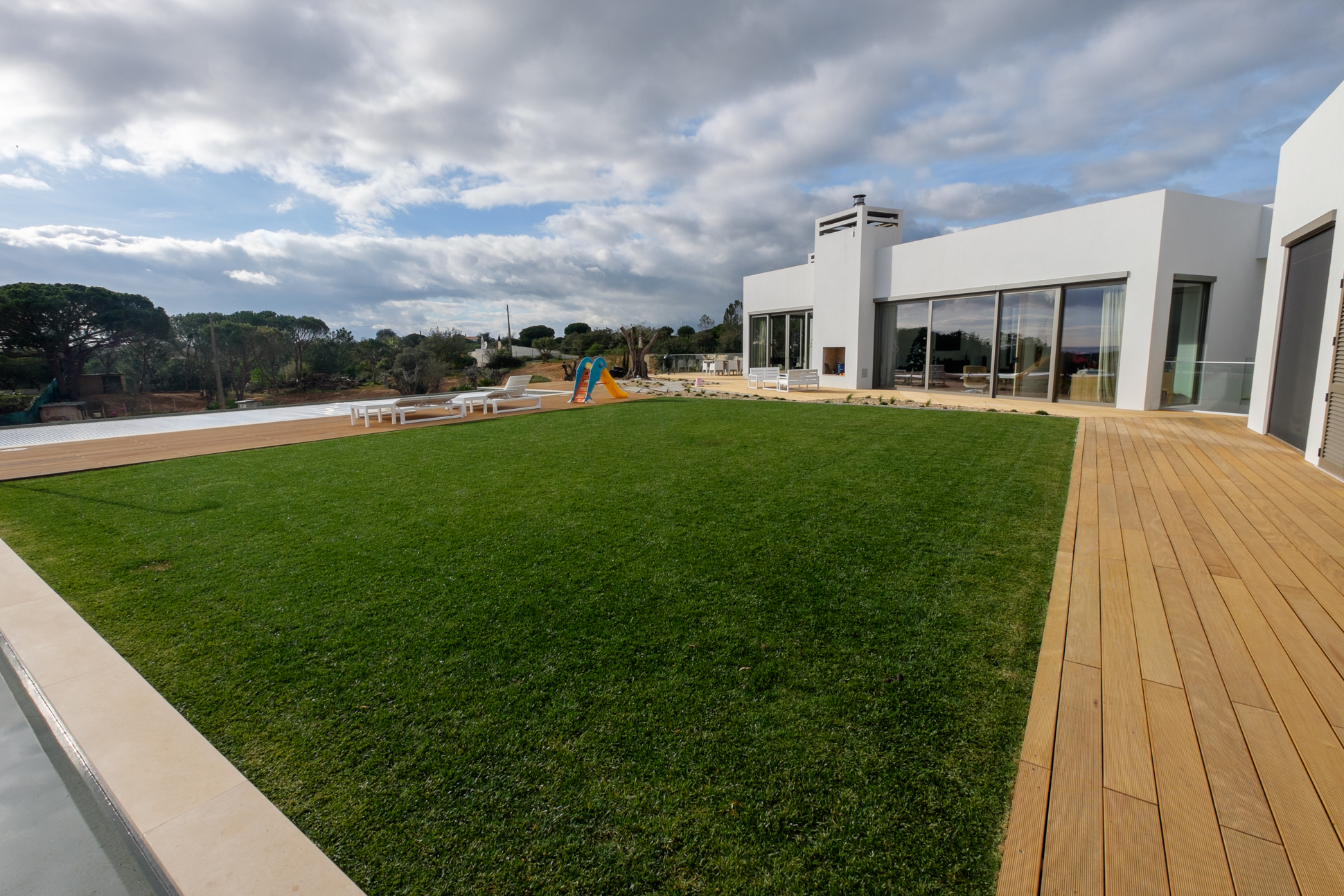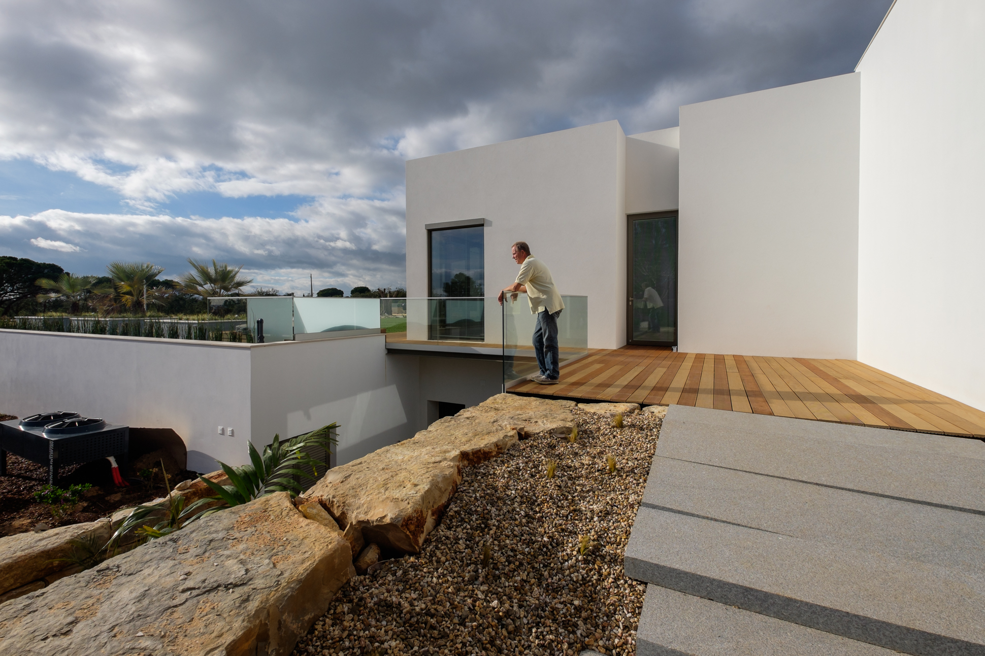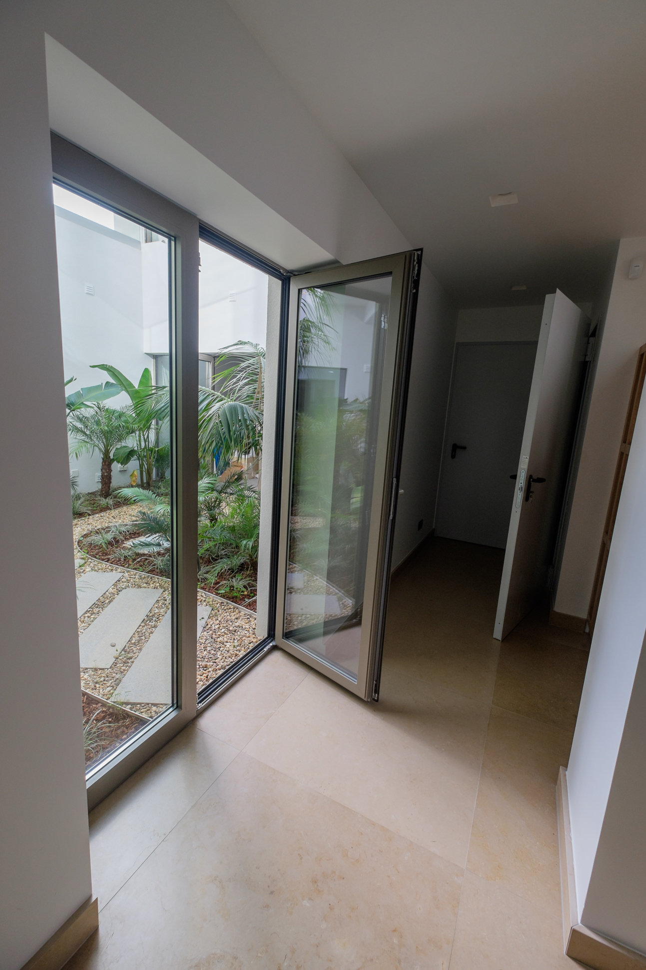 Ataija Coffee: um Ataija Crememais escuro, calcário de elevada rigidez. Pavimento com ladrilhos na medida 900x900x20mm acabamento Amaciado, obra no Algarve.