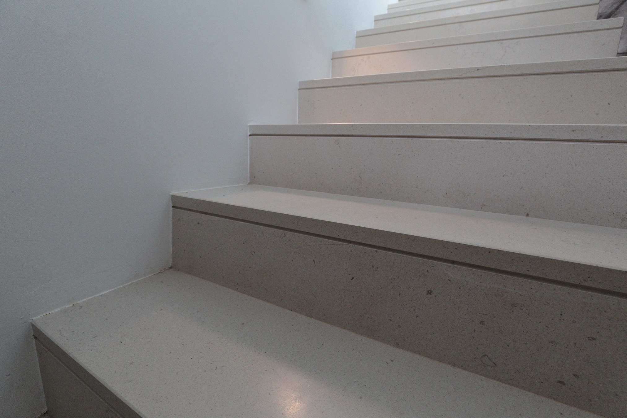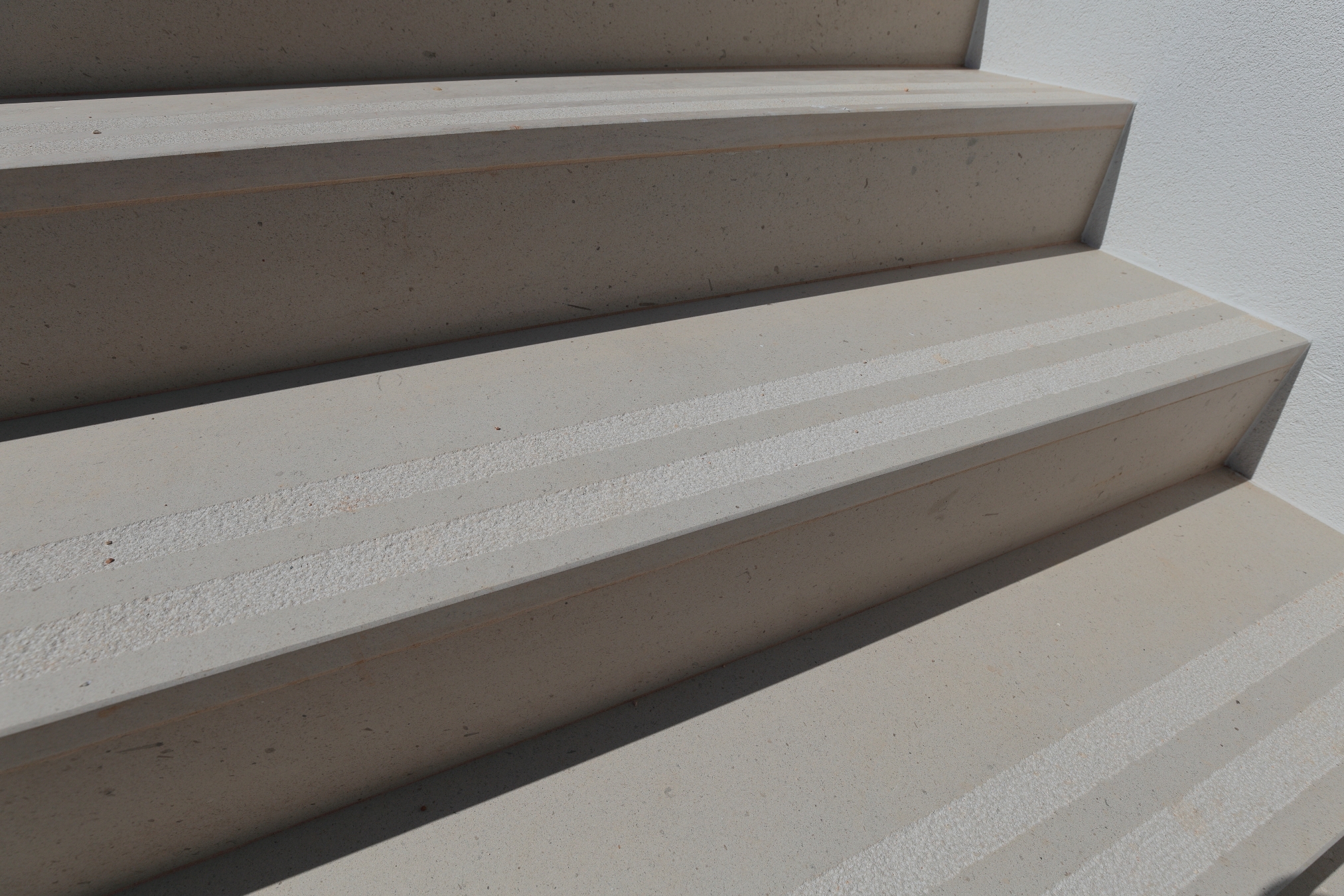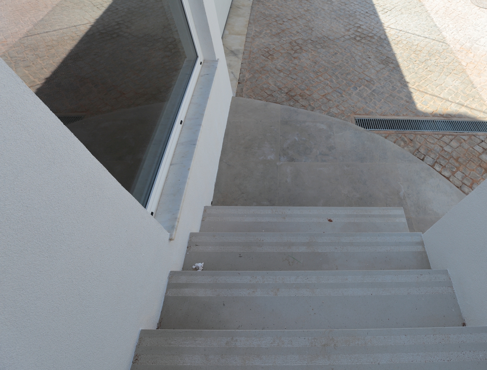 Nesta obra foi aplicada com os acabamentos Amaciado, Polido, Glacier, Mini-Glacier e Bujardado (faixa anti-derrapante nos degraus).