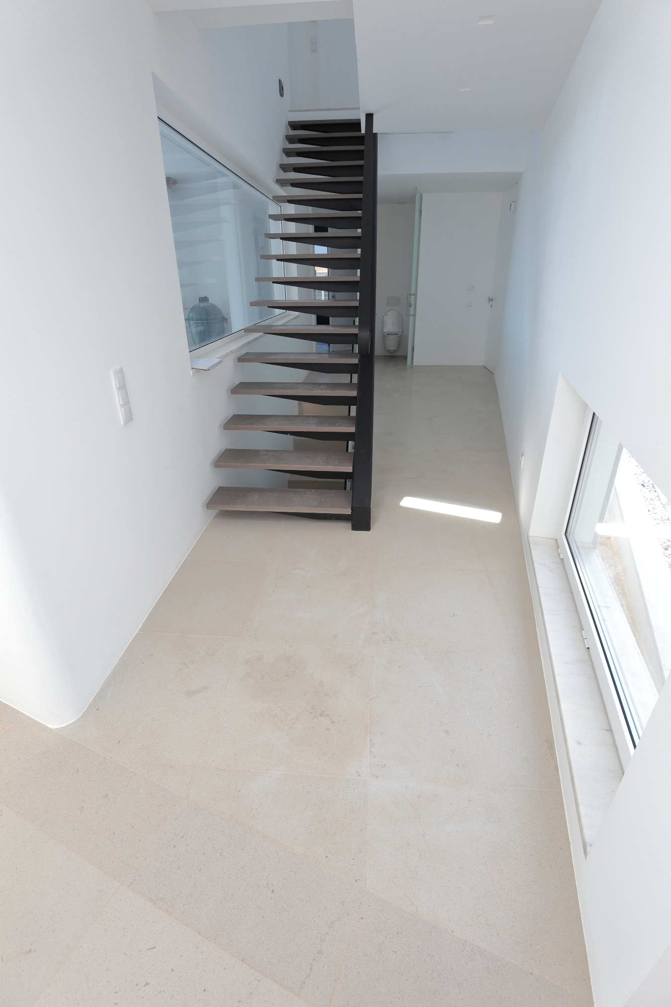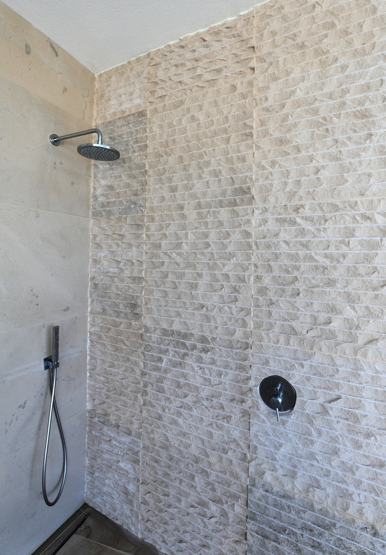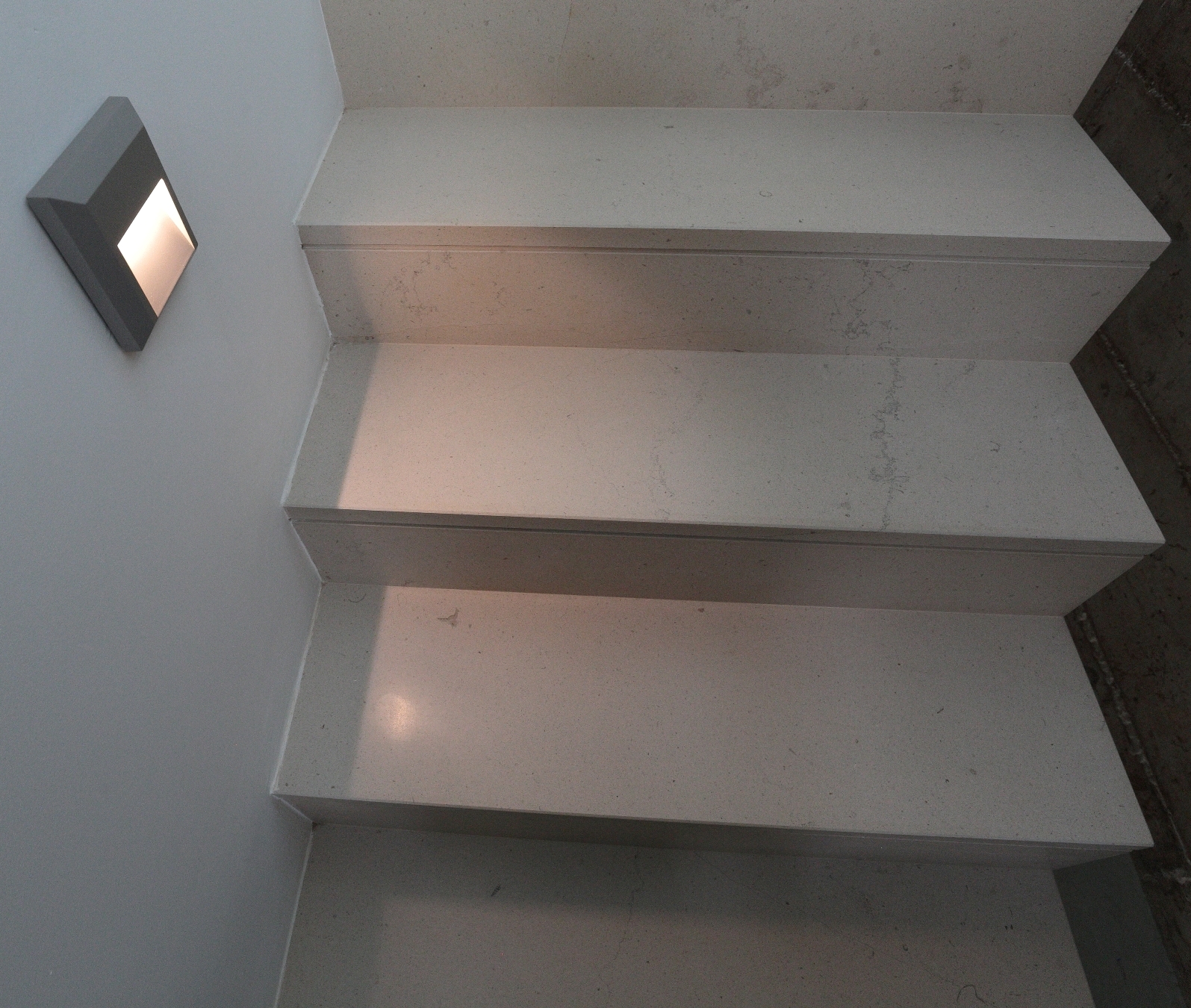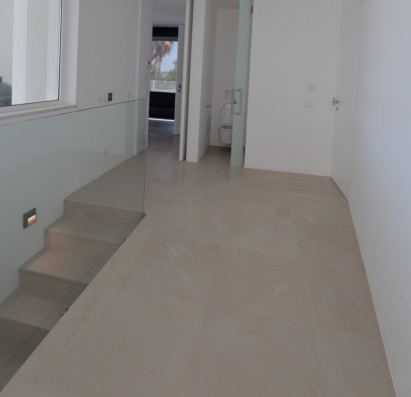 Nesta obra foi aplicada com os acabamentos Amaciado, Polido, Glacier, Mini-Glacier e Bujardado (faixa anti-derrapante nos degraus).