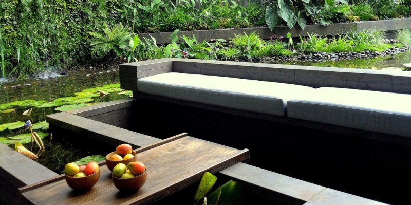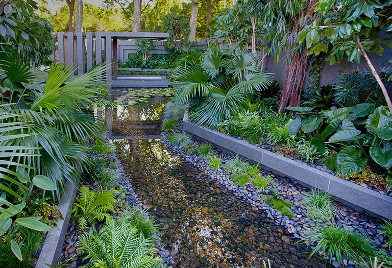 Design e fotos por Amphibian Designs, construção de The Outdoor Room, video da RHS.