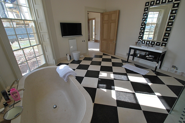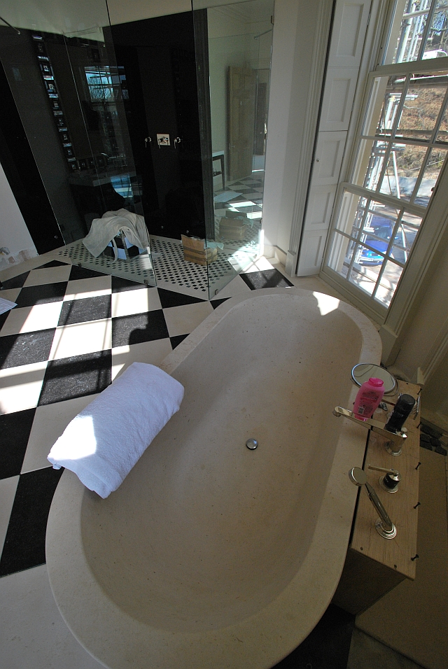 Projecto à medida feito nas Pedras Azul da Bélgica e Moleanos Limpo, incluindo a banheira maciça.